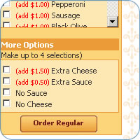 Visitors are able to chose the items on the menu, add or change ingredients using check boxes and drop-down lists.
